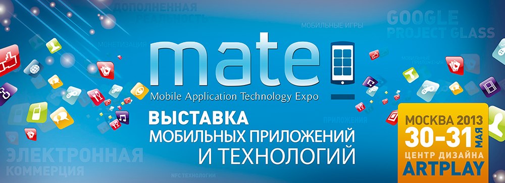 30-31 мая 2013 года в Москве, в ARTPLAY пройдет Выставка мобильных приложений и технологий (MATE) - посвященная бизнесу в мобильных сетях, основными направлениями которой являются: мобильные приложения для всех сфер бизнеса, мобильные игры, мобильная реклама, партнерский (аффилиатный) маркетинг, монетизация приложений, привлечение инвестиций, электронная коммерция. А также эффективные бизнес-модели и маркетинговые стратегии для: привлечения клиентов, их удержания и монетизации, превращения бесплатных пользователей в постоянных покупателей, увеличения количества скачиваний, укрепления узнаваемости бренда и лояльности покупателей.